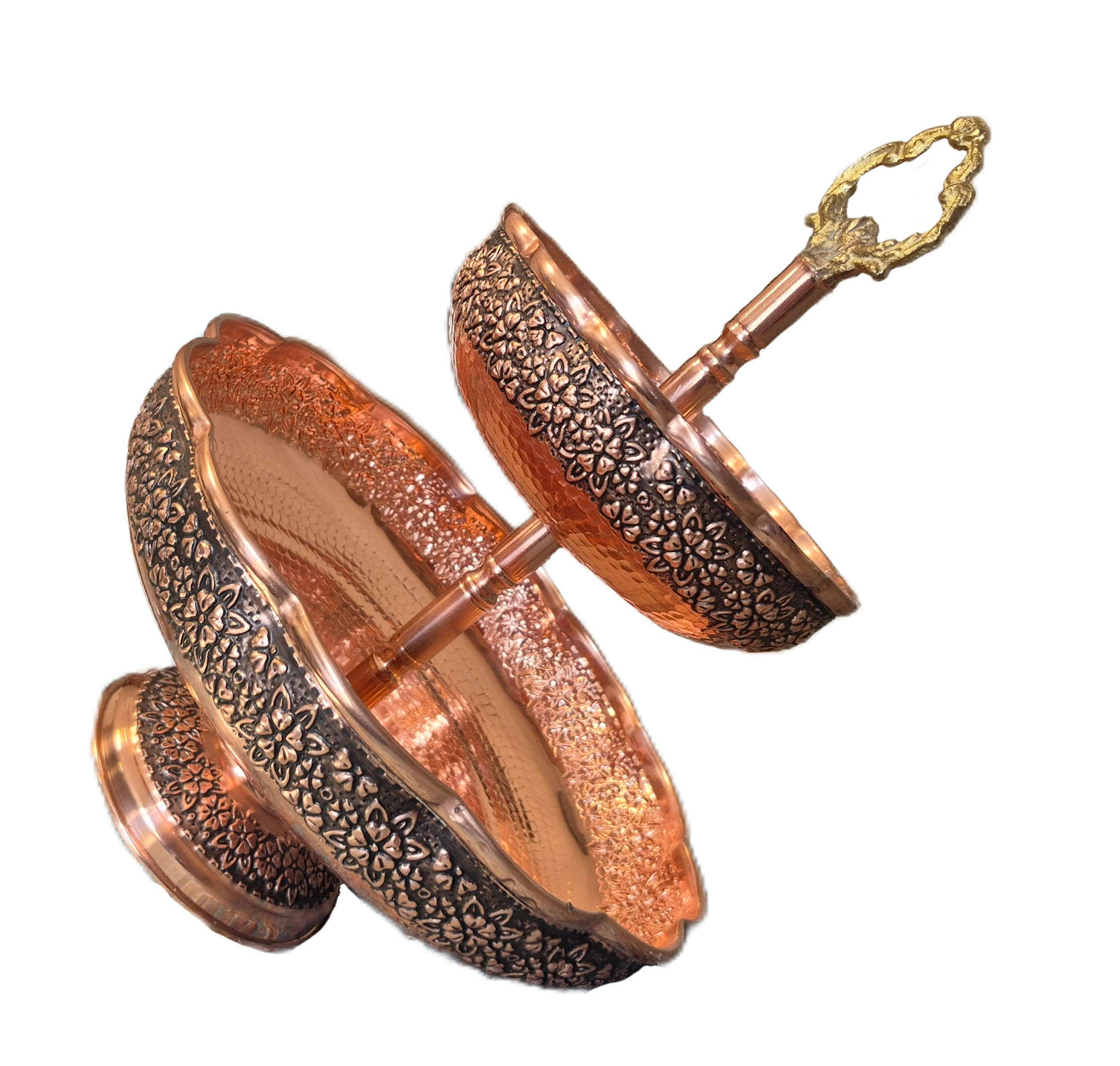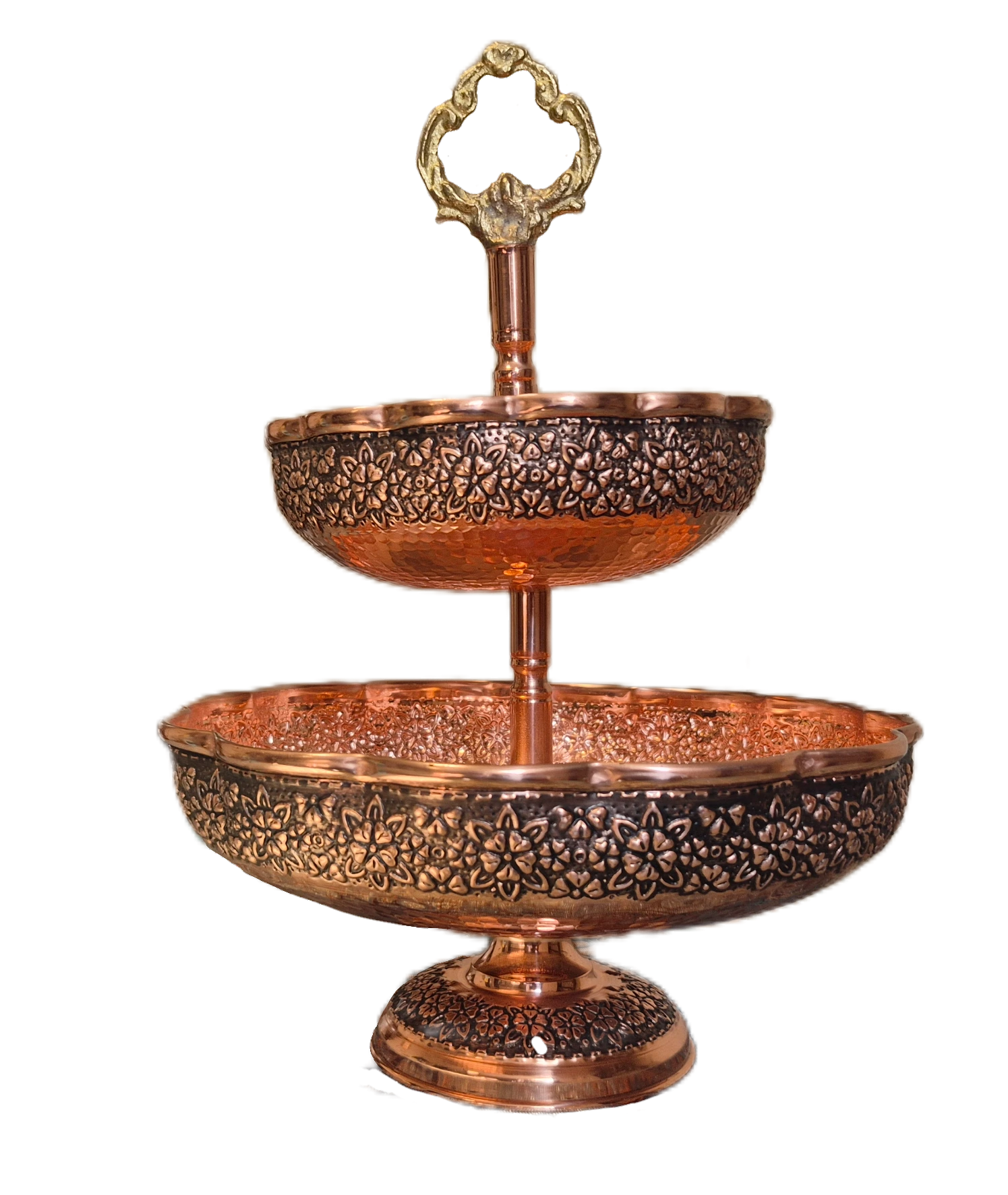 • شیرینی خوری مسی نانو دوطبقه رز گوهر | انواع ظروف مسی به قیمت کارگاهی | تولیدی رز مس زنجان